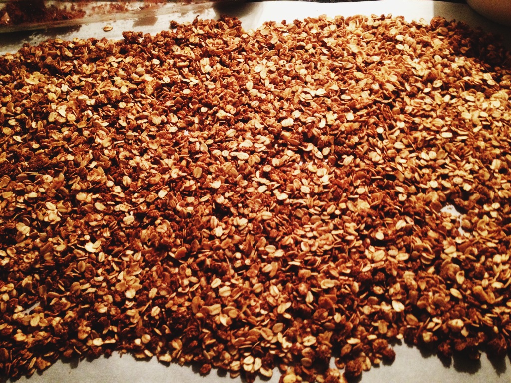 I make granola at least once a week. It’s just my “go-to”. The smell sometimes leaks out of the apartment into the hallways of our building. It’s fantastic. I store it in cute little mason jars. Andy is a cereal guy for breakfast, so it’s nice to keep in the pantry.