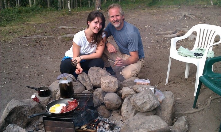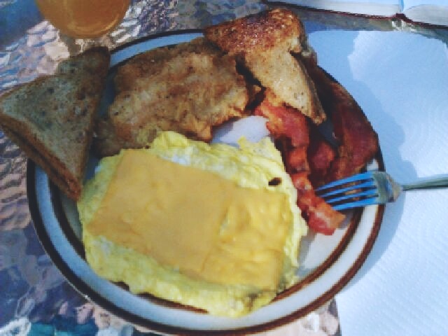 Another one of my dad’s specialties when I was growing up, is his majorly awesome delicious breakfast’s. How fitting was it when yesterday, he texted me this photo of the hot breakfast he made at the cabin?? Complete with another mountain fried trout : )