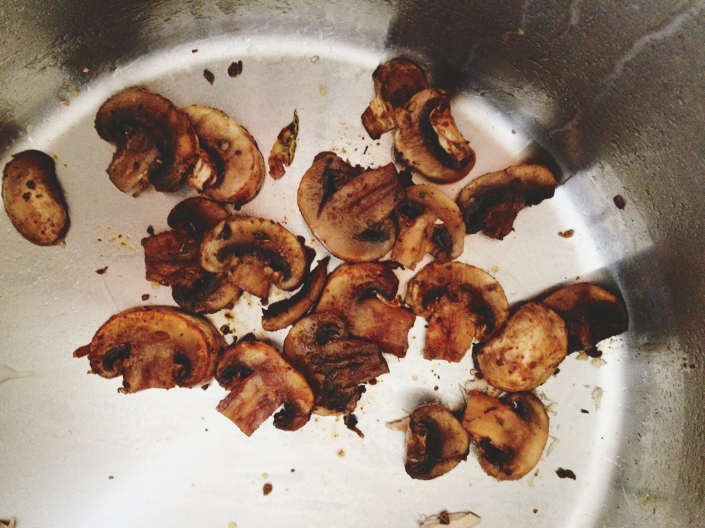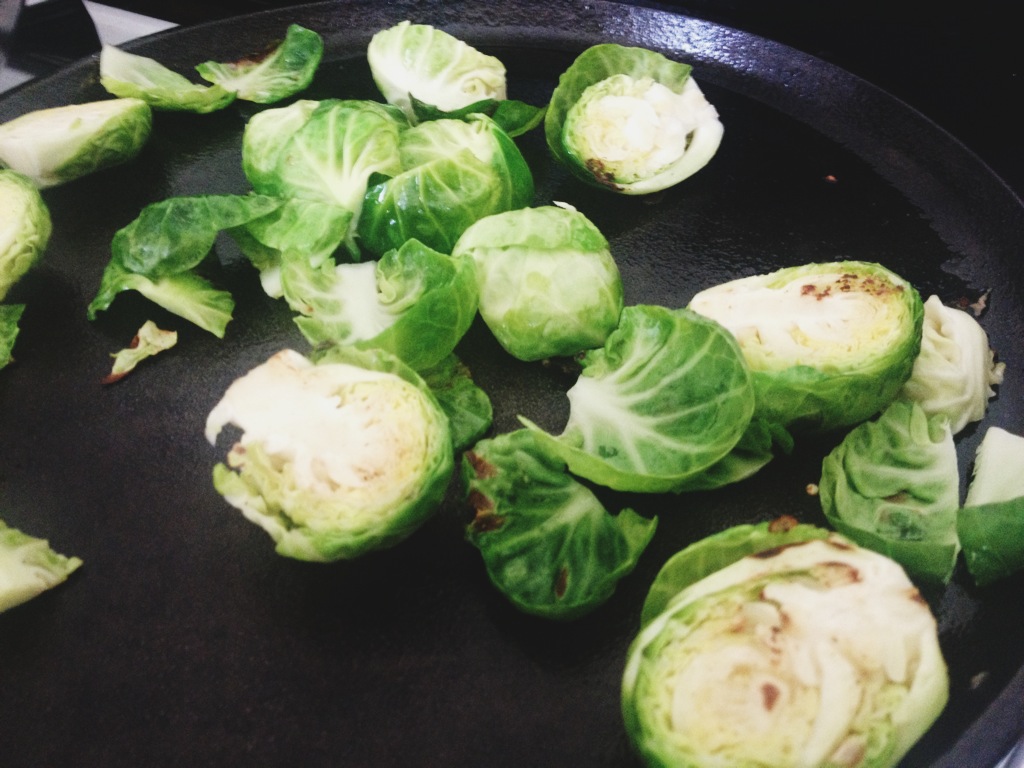 Cook the quinoa as directed, but use store bought chicken broth instead of water. The flavor is better! On a different burner, saute an onion. Half way through toss in some chopped mushrooms and garlic. On a separate skillet, saute halved brussel sprouts in butter. They’ll cook more once they are in the soup pot so don’t worry about boiling them.