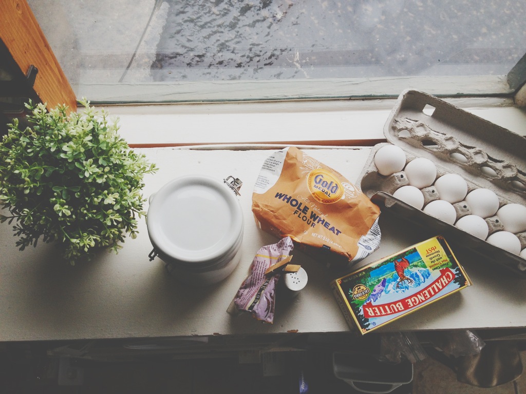 Mrs. Crocker did a fabulous job on her recipe. I swapped out the all-purpose flour for whole wheat flour, added 1 extra egg, and added a little more vanilla. Mine turned out dense and hearty. Do whatchu want.