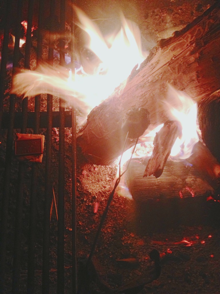 Since you want these two ingredients to get melt-y together, set it close to the campfire, but not right above it.