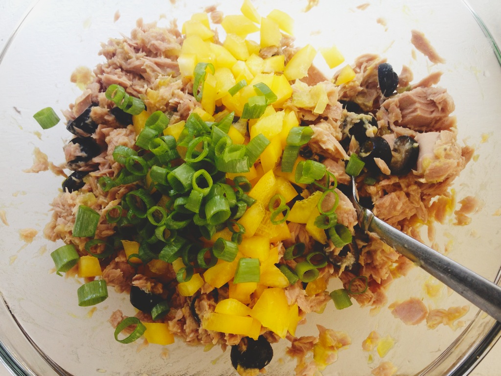 This is not your normal Tuna Salad – it has no mayo (sorry mayo fans!). It’s not like I’m a mayo-hater. I just opted for a more fresh approach, this time ’round.