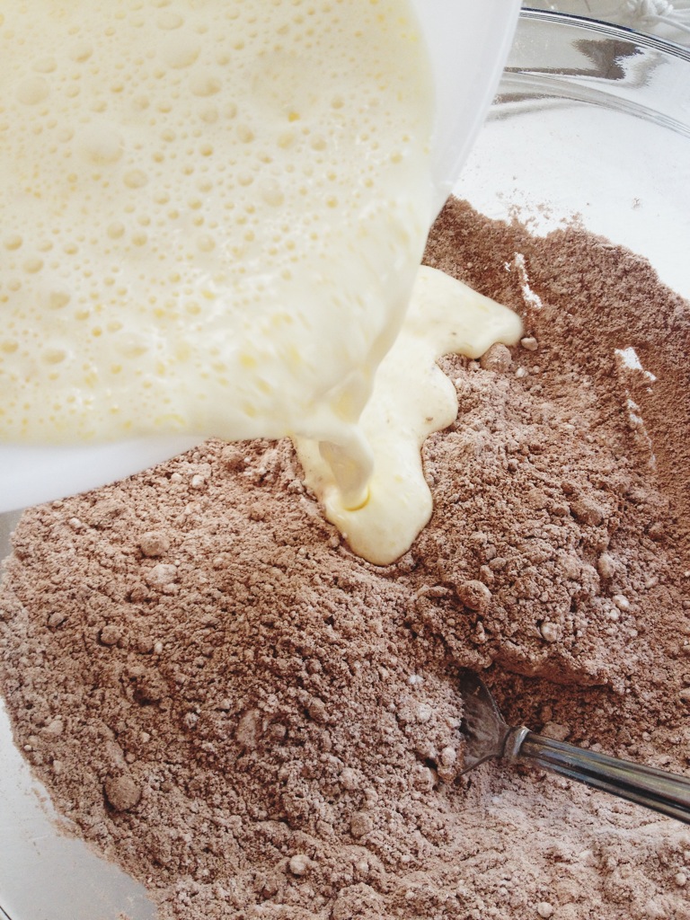 Separately mix the remaining wet ingredients together.  Then marry the two, like so.