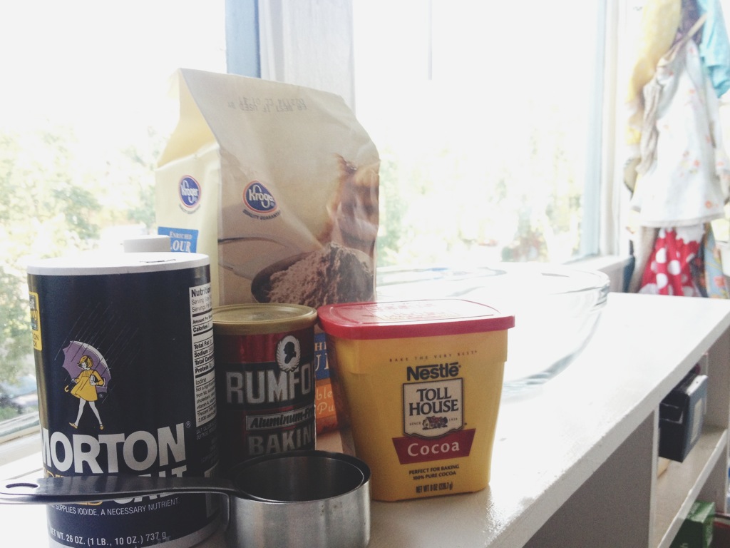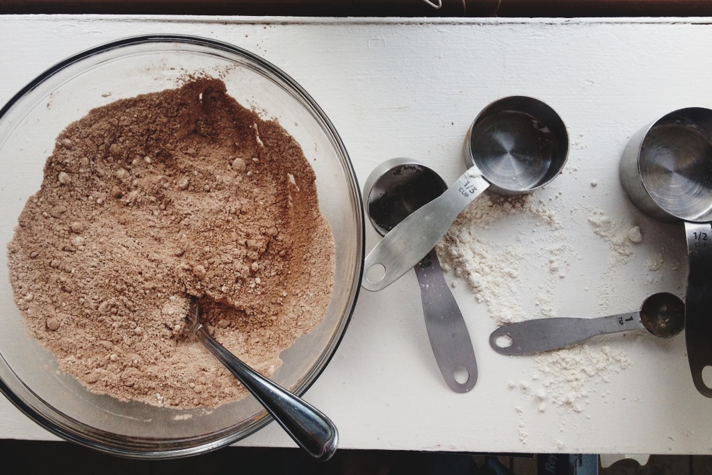 Mix the first 5 dry ingredients together.  And make a mess like I usually do..