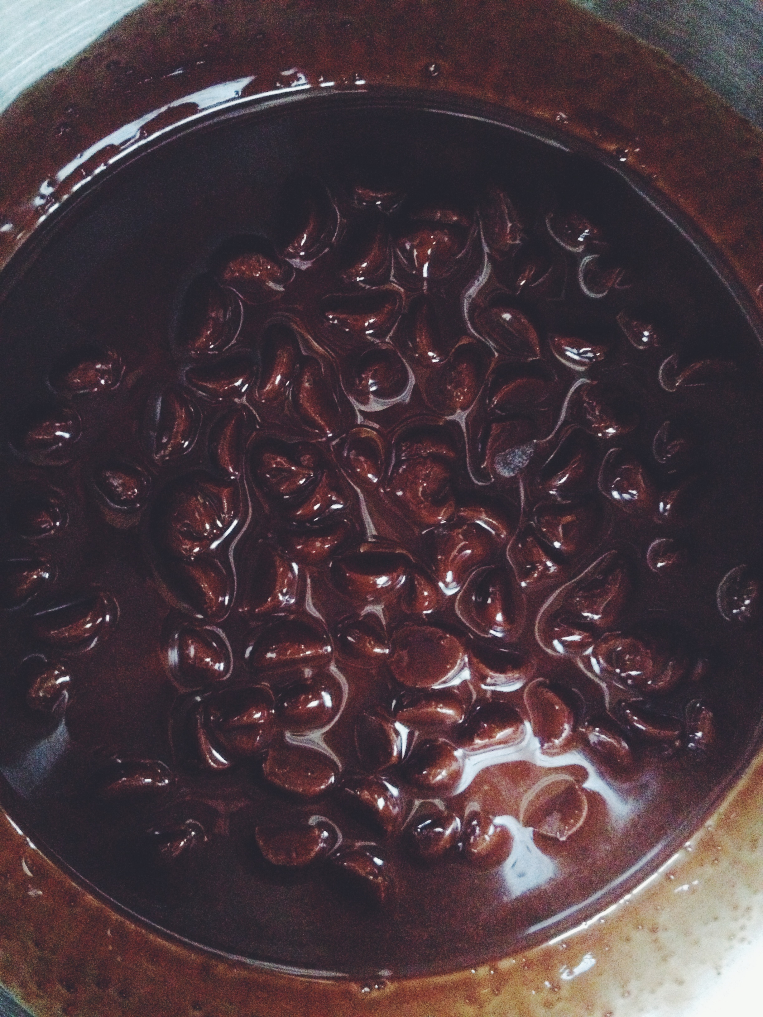 You’ll want to start by melting some chocolate, slowly, in the microwave (20 sec cycles). Or the stove, on low heat. I added a small piece of Cacao butter to mine, it helps the consistency, but this dipping business will work either way, really. I ordered my Cacao Butter online, and it is excellent for your skin too!