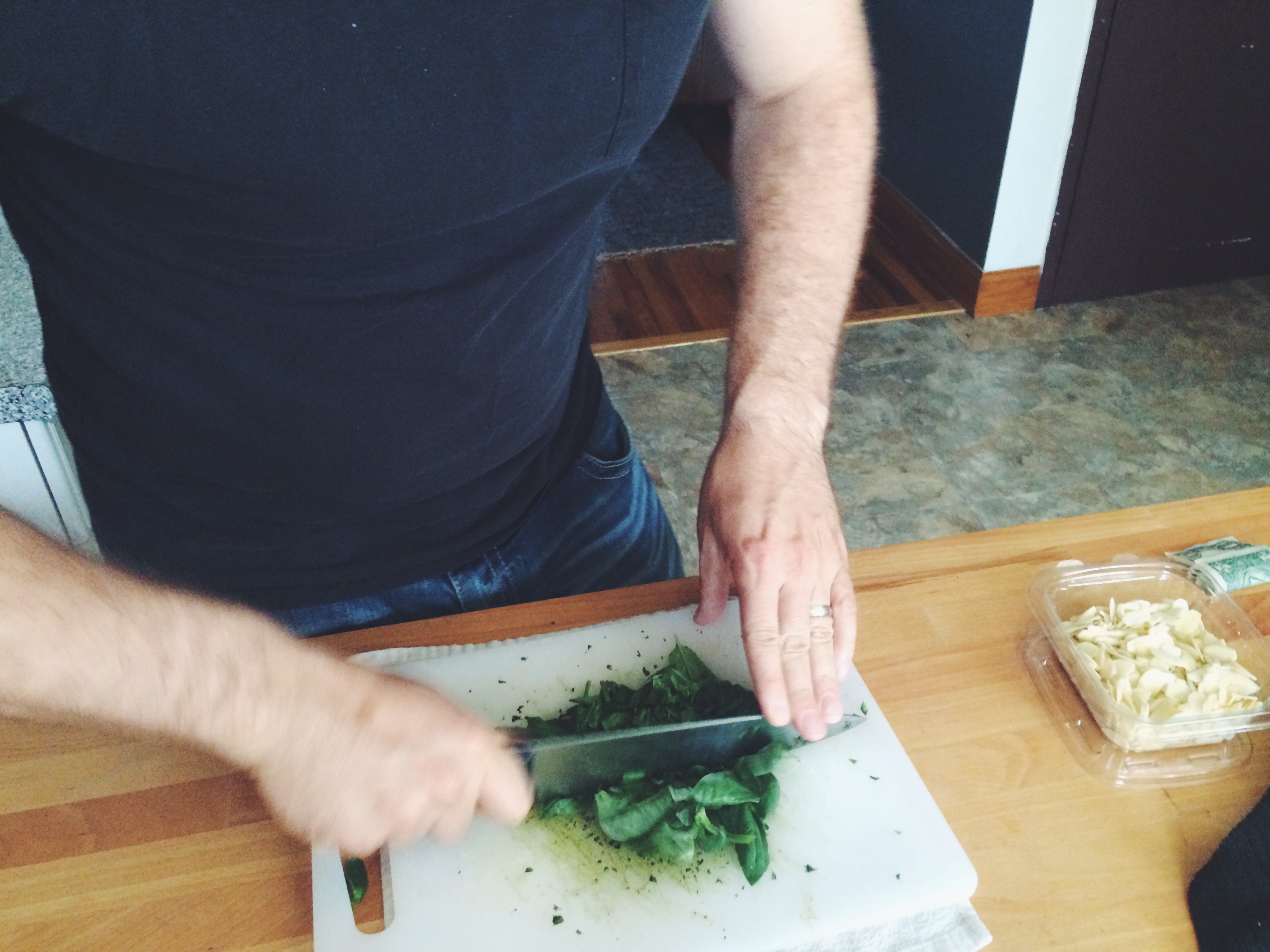 Let me tell you, it is an extremely useful skill to have! I just learned 3 very basic (and fun!) chopping techniques from him. Rock-chop, tap-chop, and cross-chop. We had so much fun making basil together!