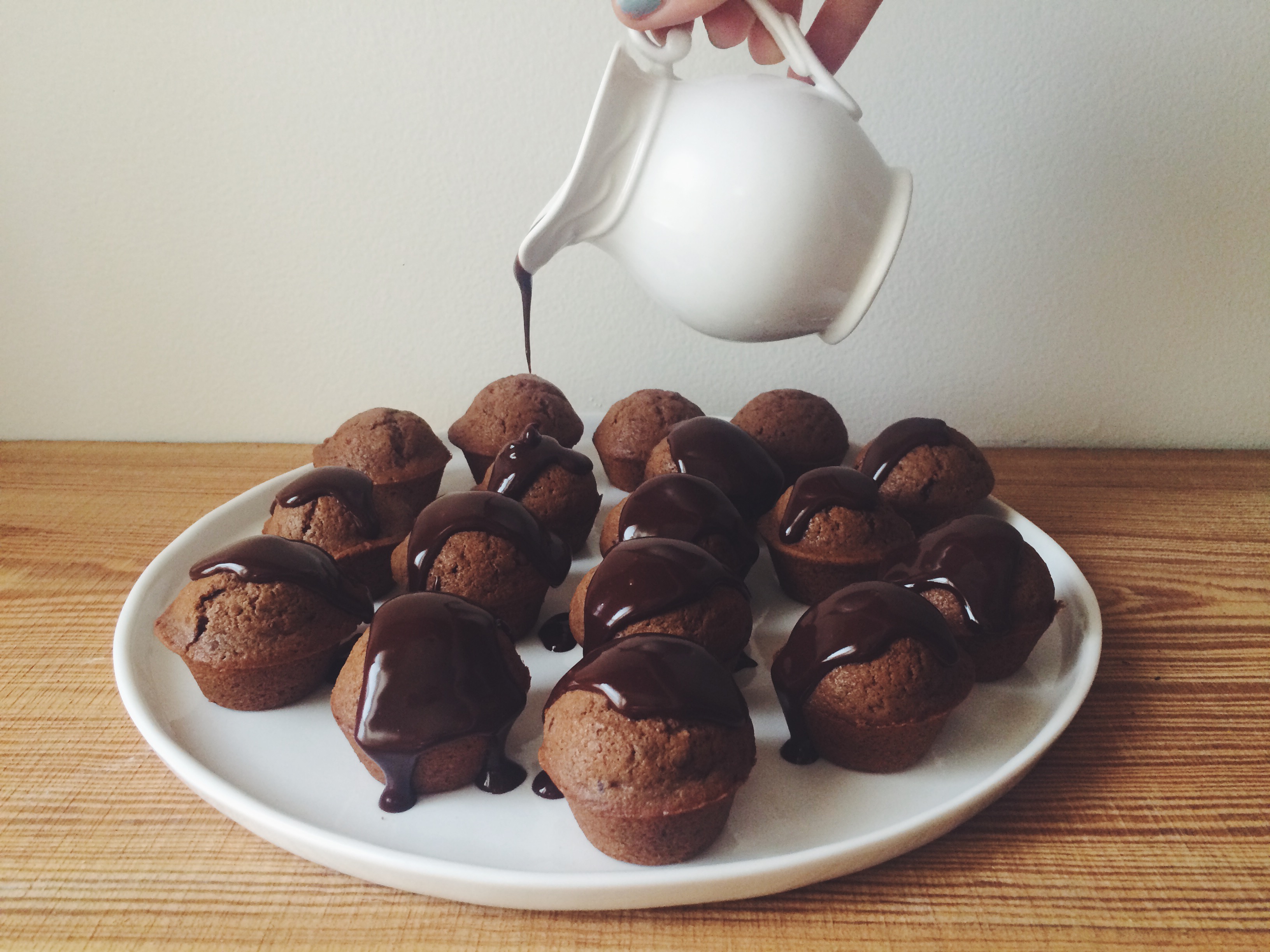 Listen, it is the duty, honor, and responsibility of a chocolate-lover to make Ganache. The rich decadent smooth nature of this substance, refuses to be denied. This week, I baked a basic chocolate muffin recipe, and then transformed them by pouring ganache on top.