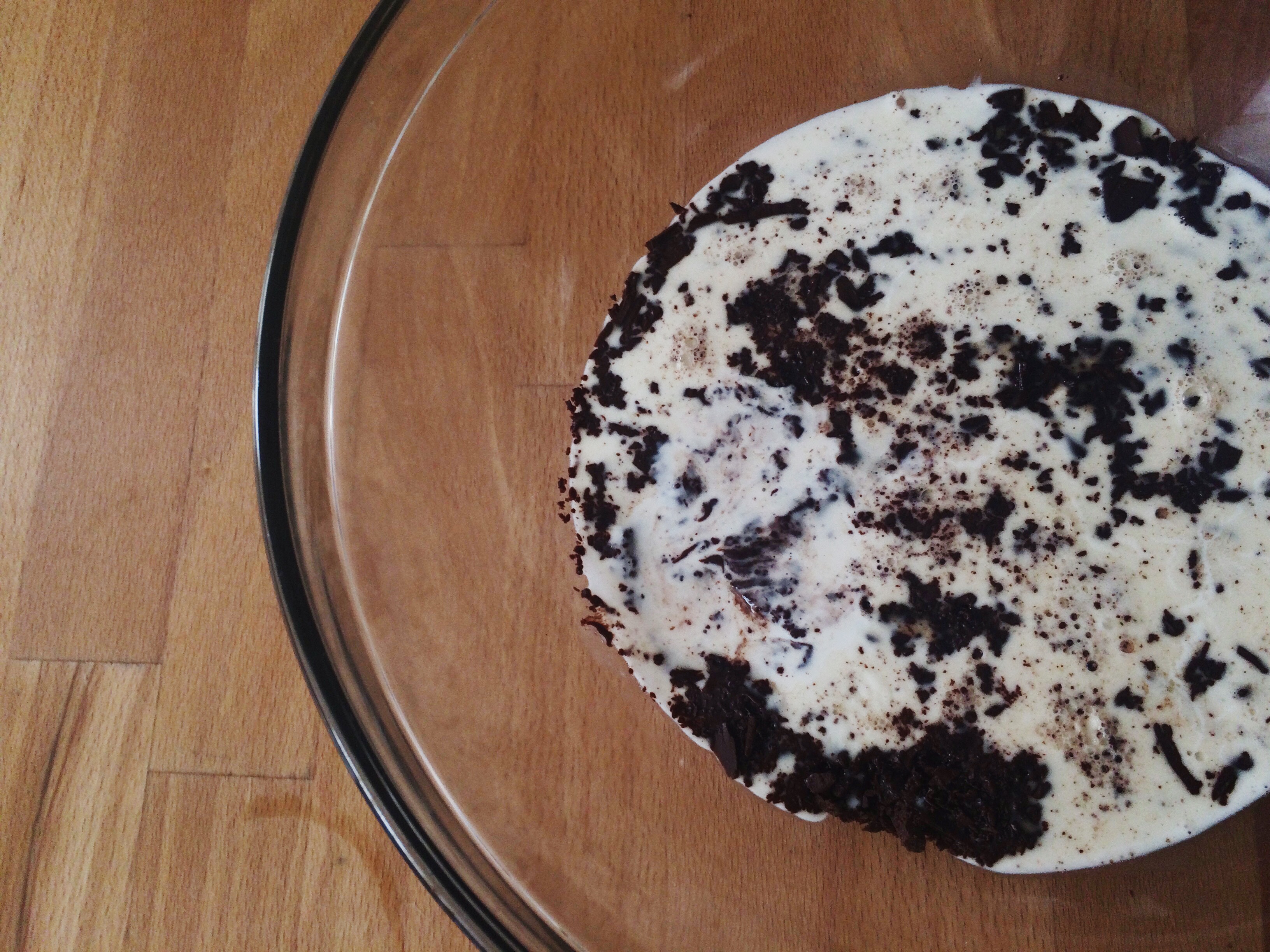Use a spatula to fold it a few more times, since chocolate sometimes settles on the bottom.