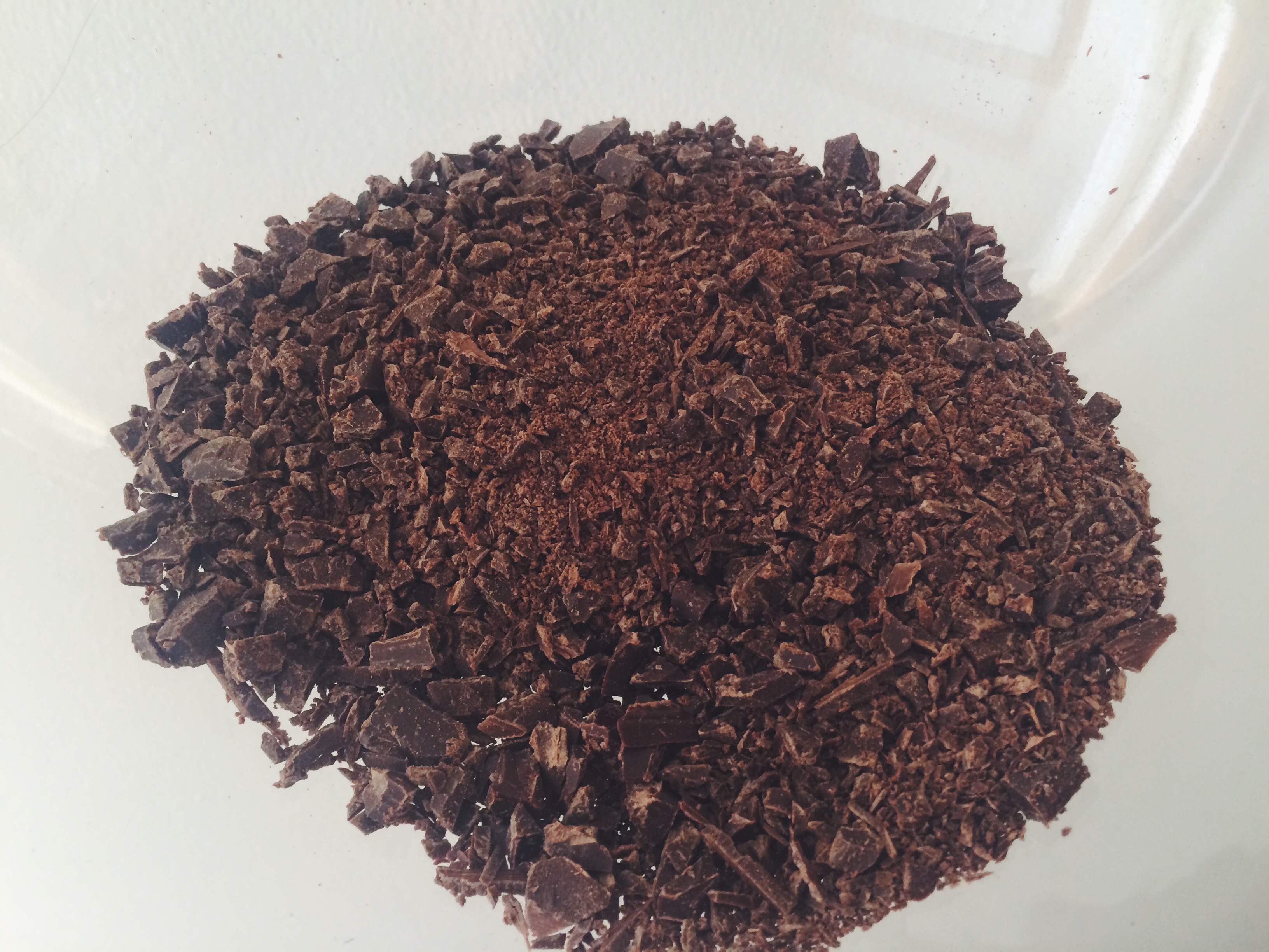 Chop the chocolate. Chop til you drop. It’s quite the chore but it is the only way. Place the pieces in a large bowl.