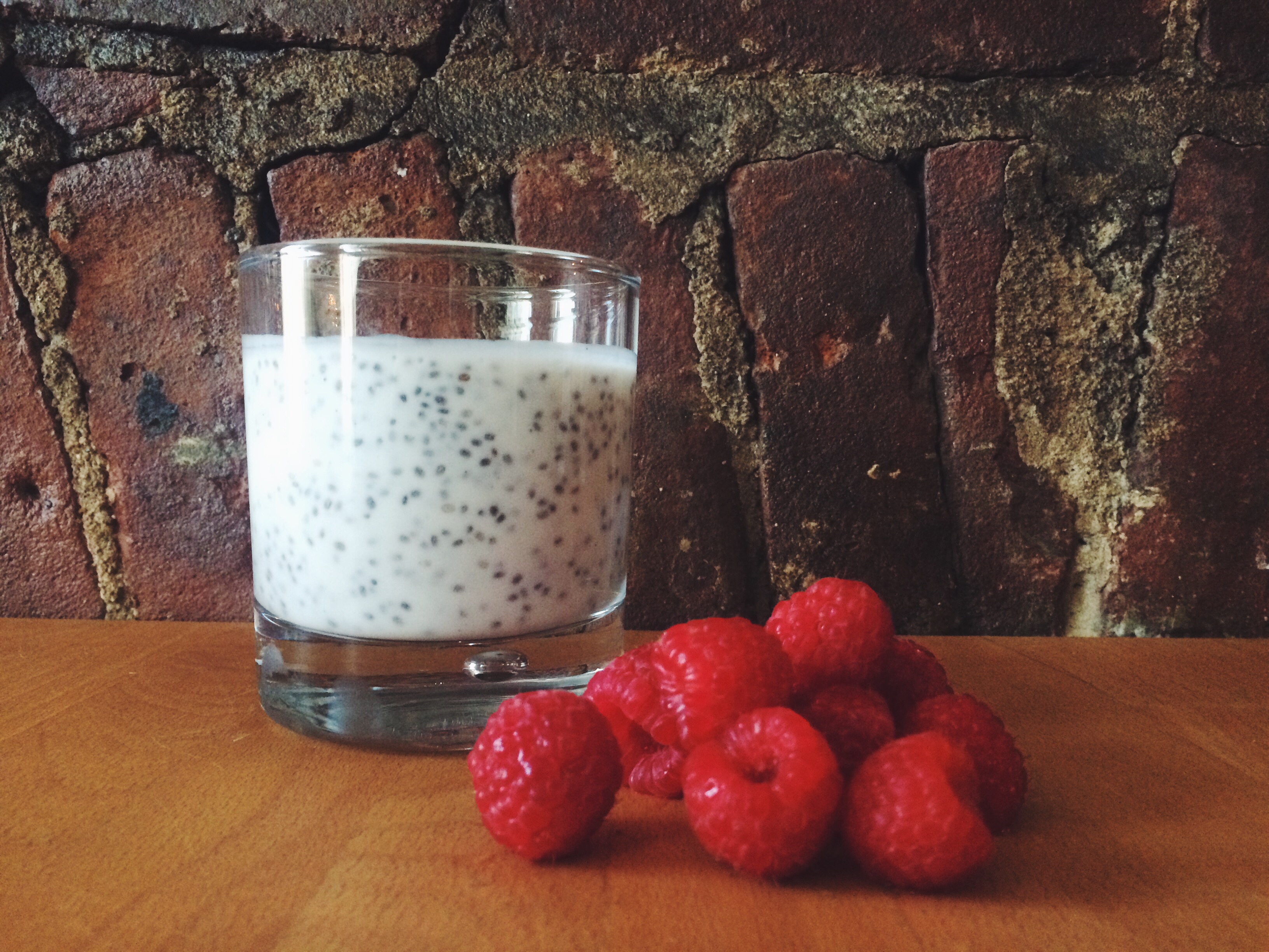 Go buy some delicious nutritious vanilla yogurt Kefir, and chia seeds.  But don’t come home without fresh raspberries too, k?