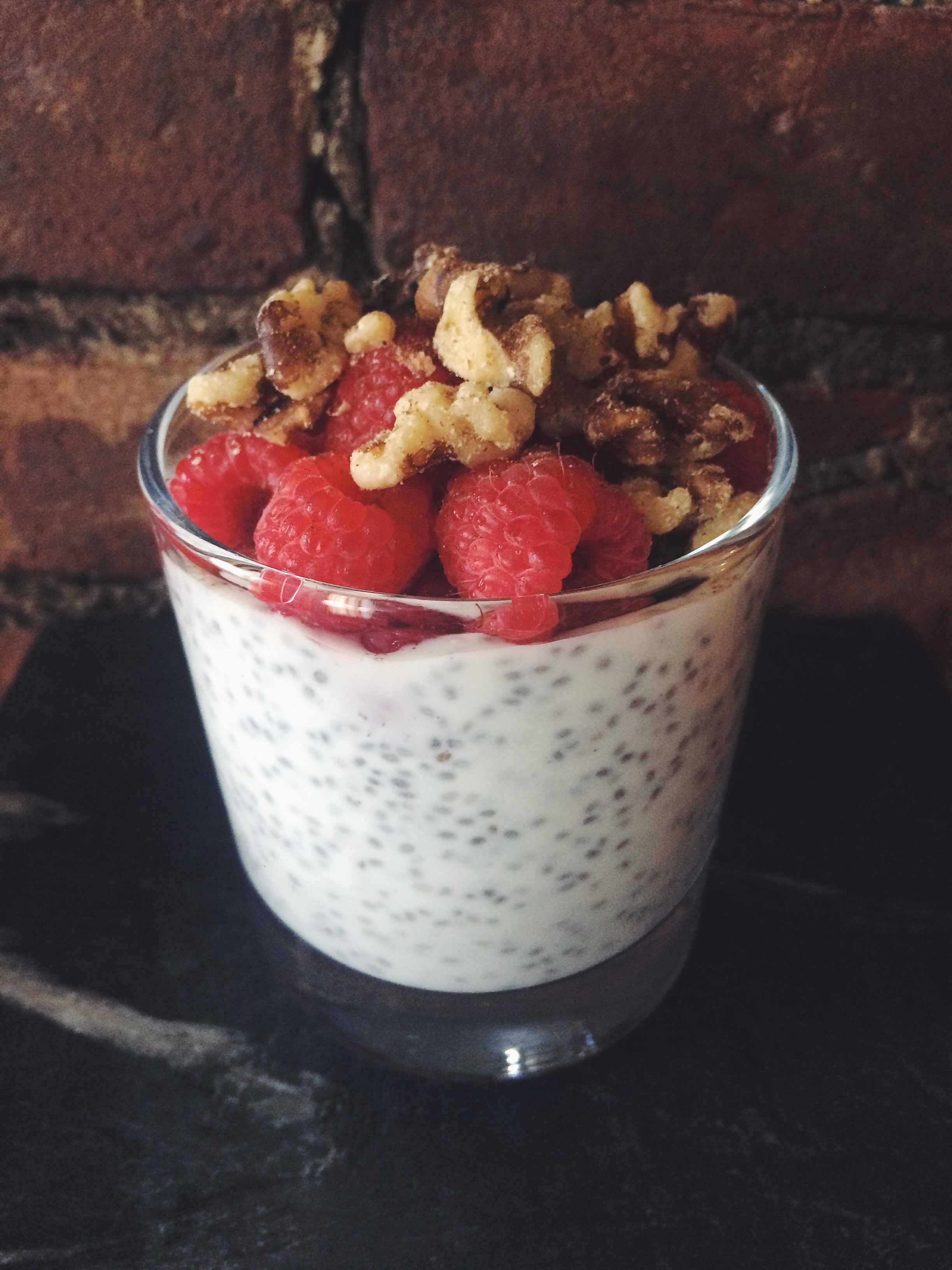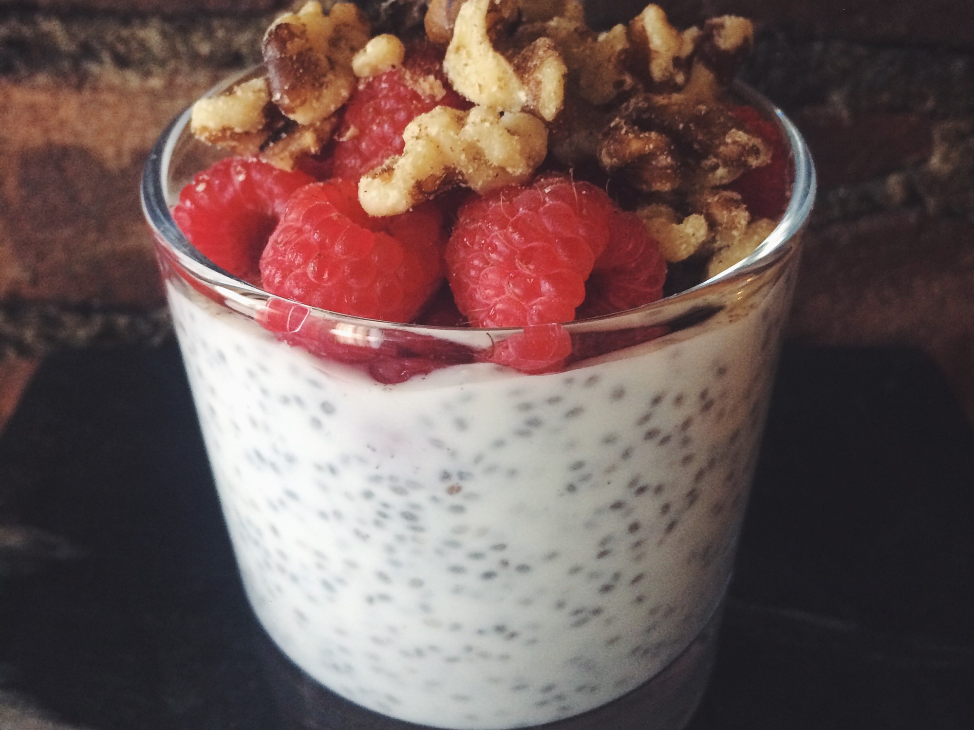 Chia Vanilla Kefir with Raspberries and Walnuts