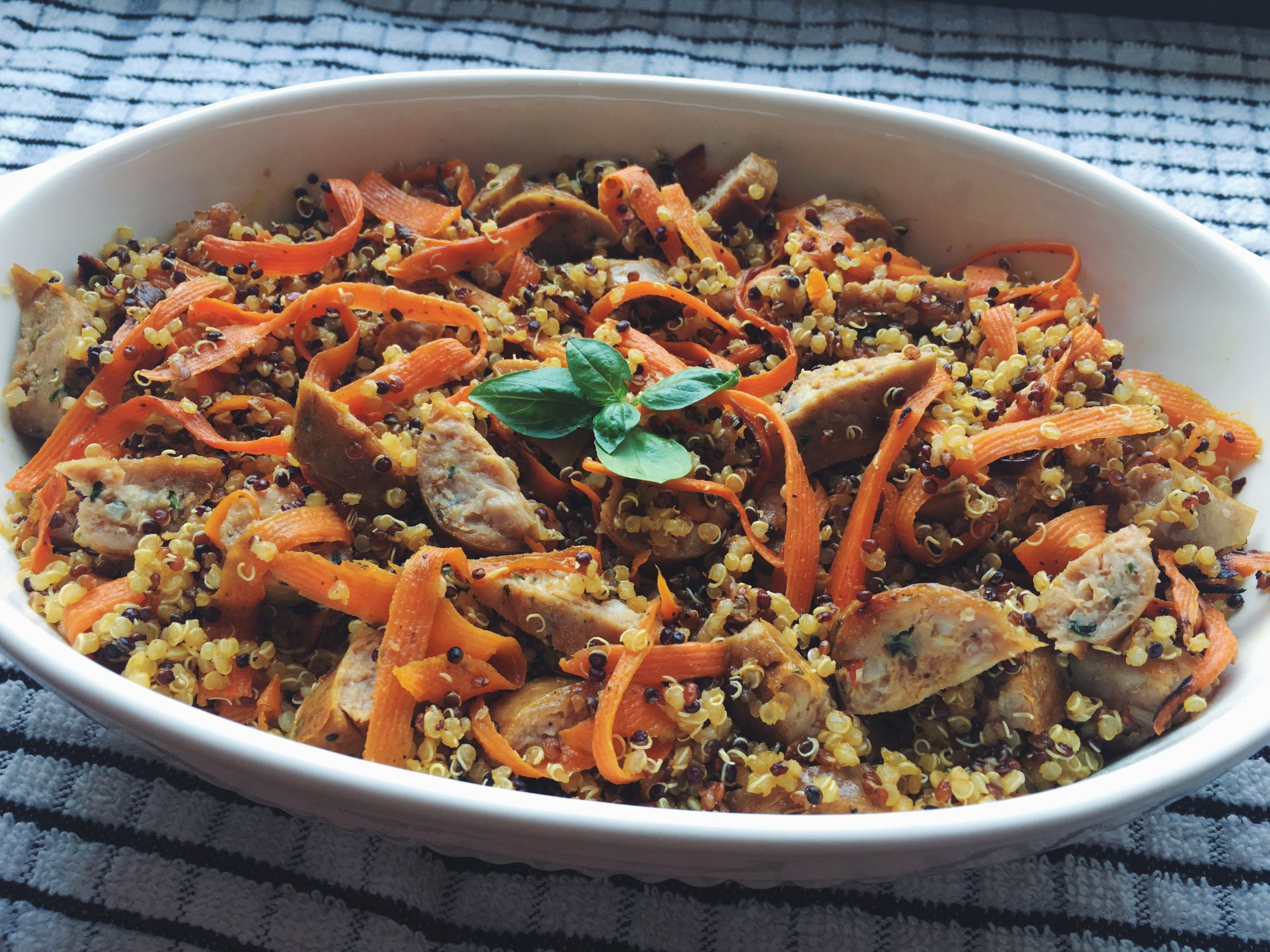 Chop sausages up into small bite sized pieces. And finally, combine with the quinoa and carrots.. you’re done!